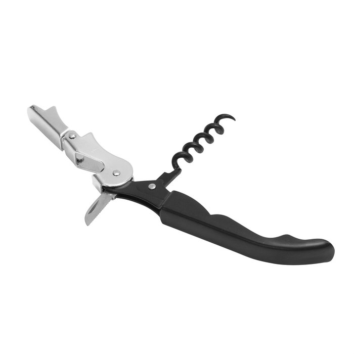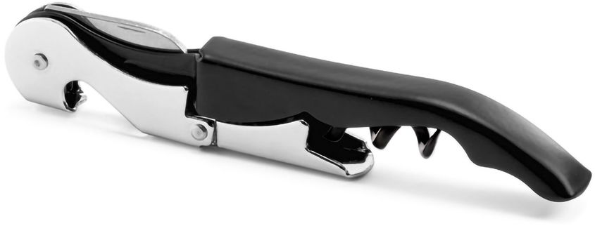Set de 2 copas para vino y sacacorchos destapador 2 tiempos. Abridor de botellas en acero inoxidable 430 + acero cromado con acabado negro mate. Incluye espuma protectora donde encajan las piezas para su guardado y traslado.