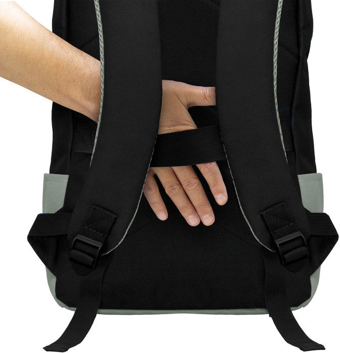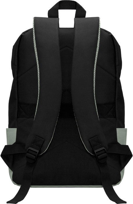 Mochila urbana porta notebook de hasta 15 pulgadas. Bolsillo frontal con cierre horizontal y dos bolsillos laterales. Compartimento principal con bolsillo acolchado para proteger la notebook. Correas ajustables y espalda acolchada. Tiradores de cierres plásticos.